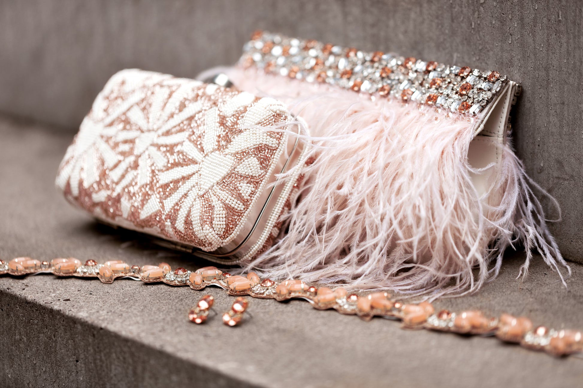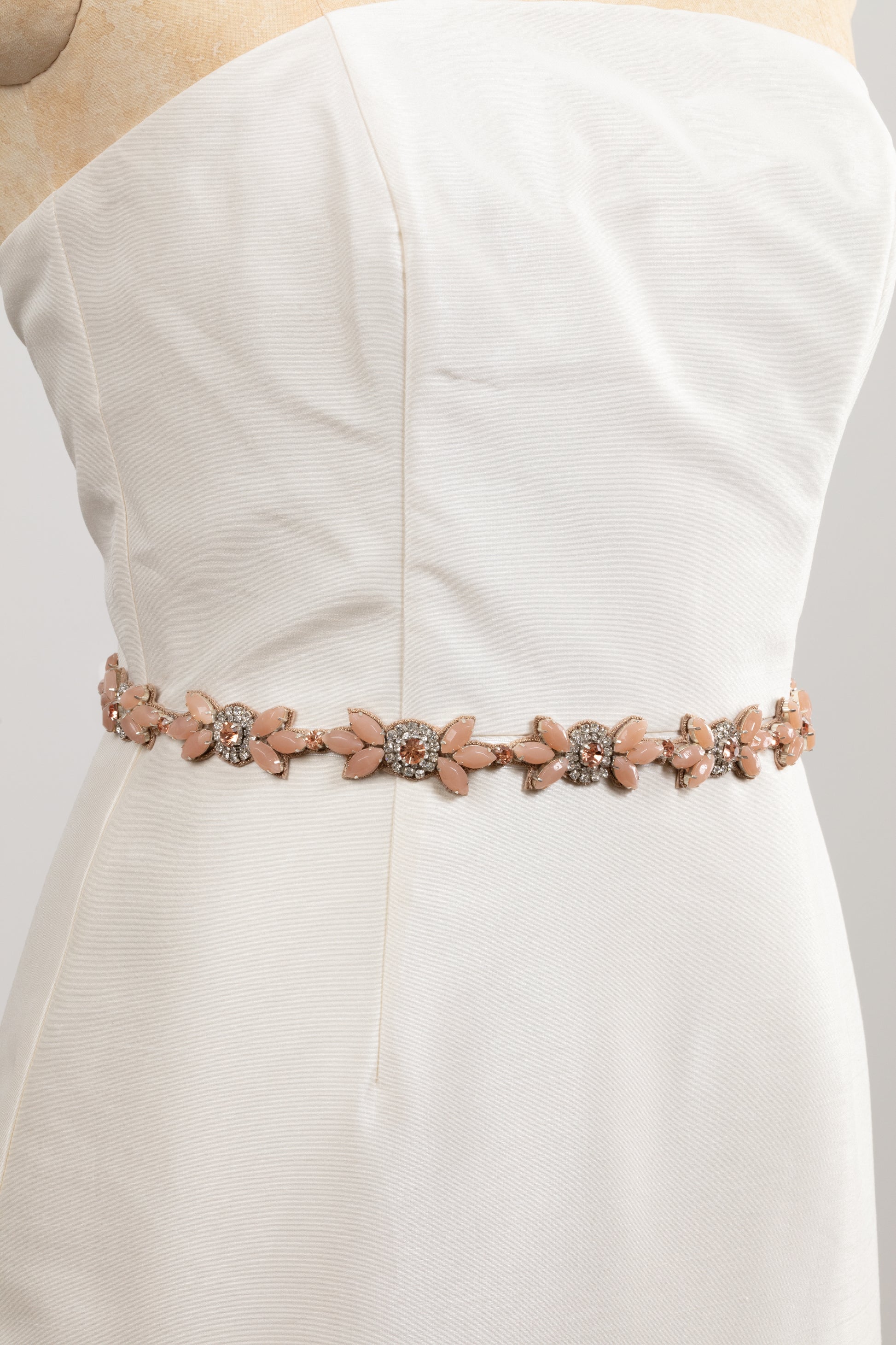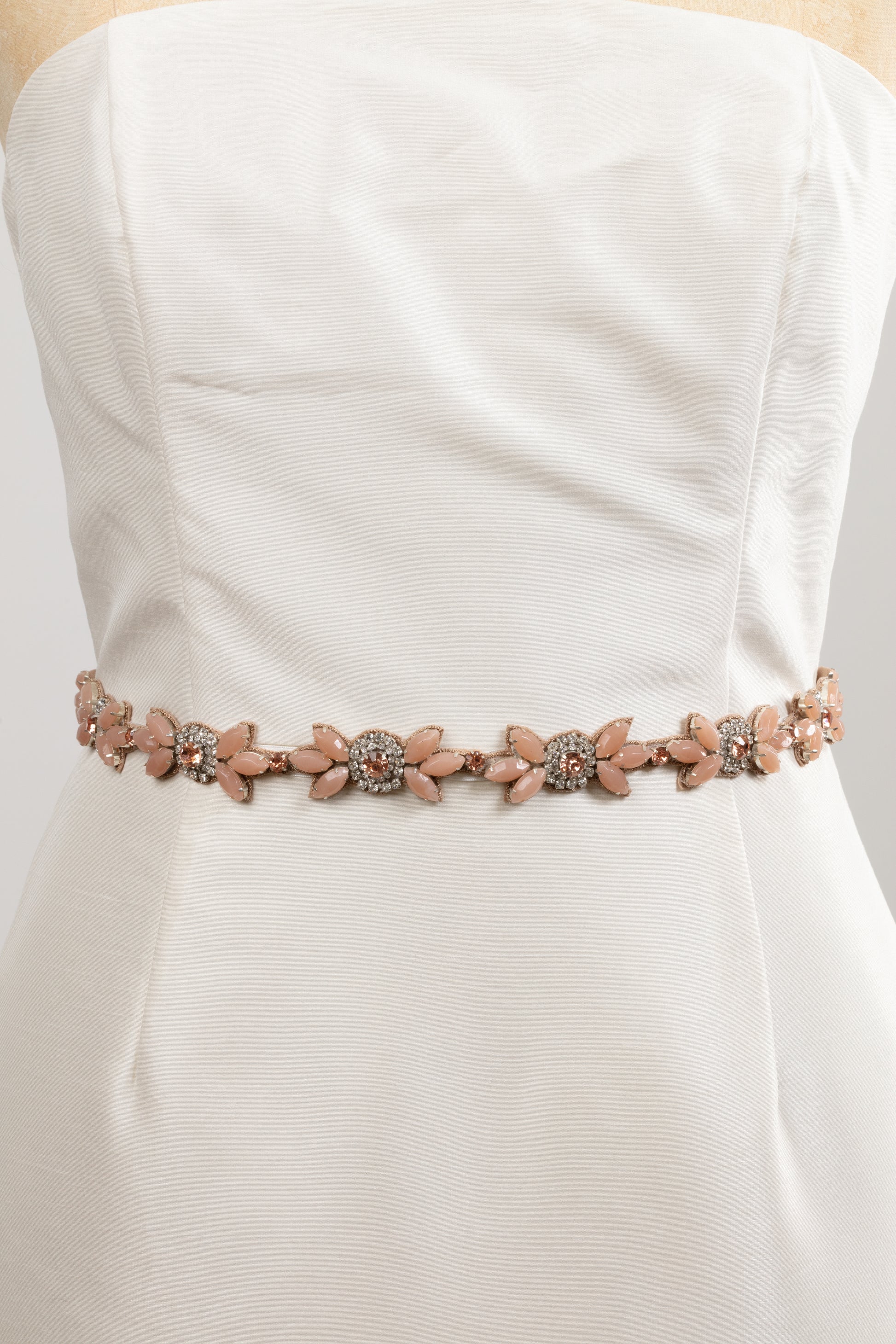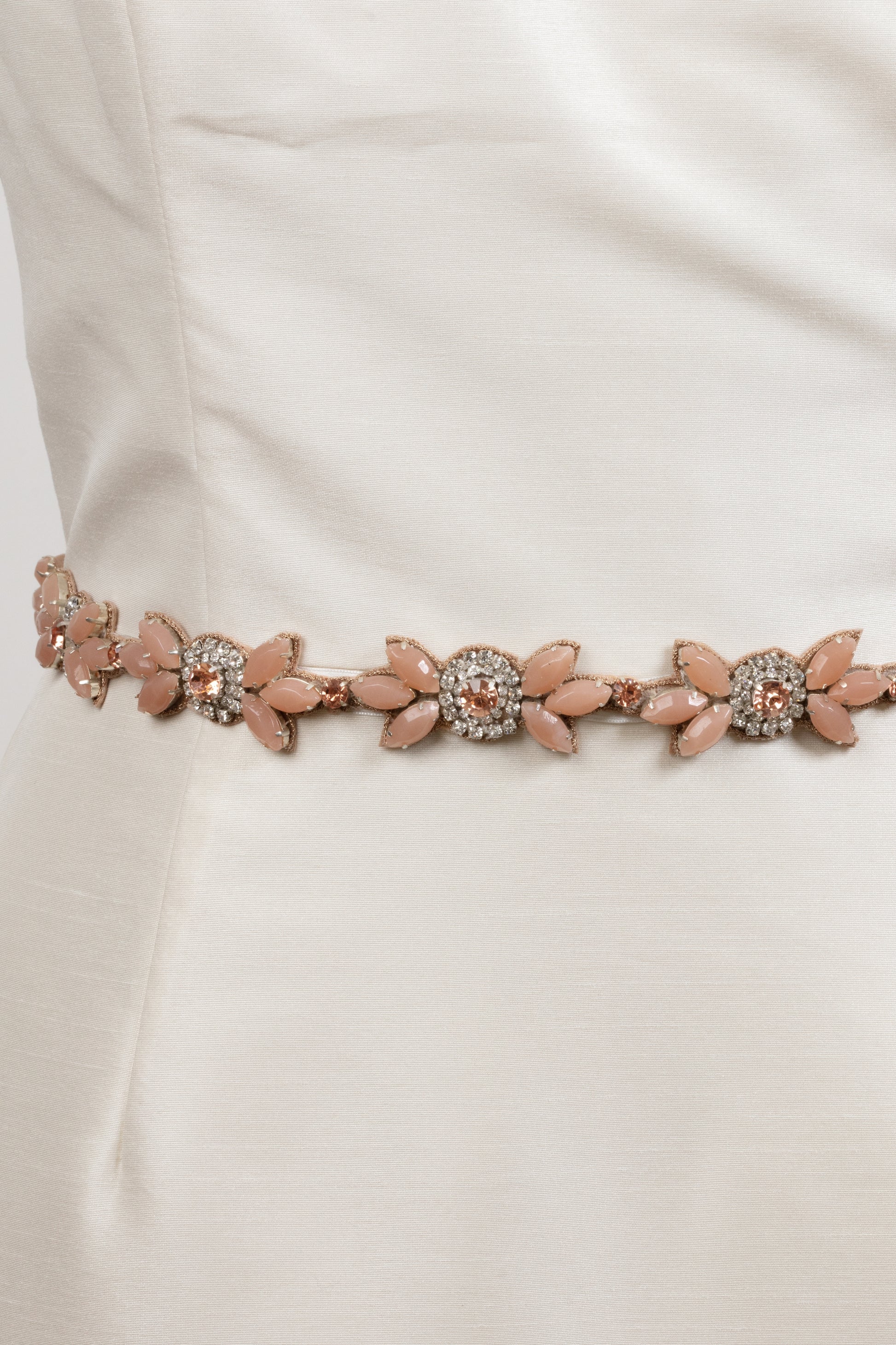 Hand Beaded Chunky Floral Rose Quartz and Blush Crystal Jeweled Boho Long Applique Sash Belt by Camilla Christine Bridal Accessories & Wedding Jewelry