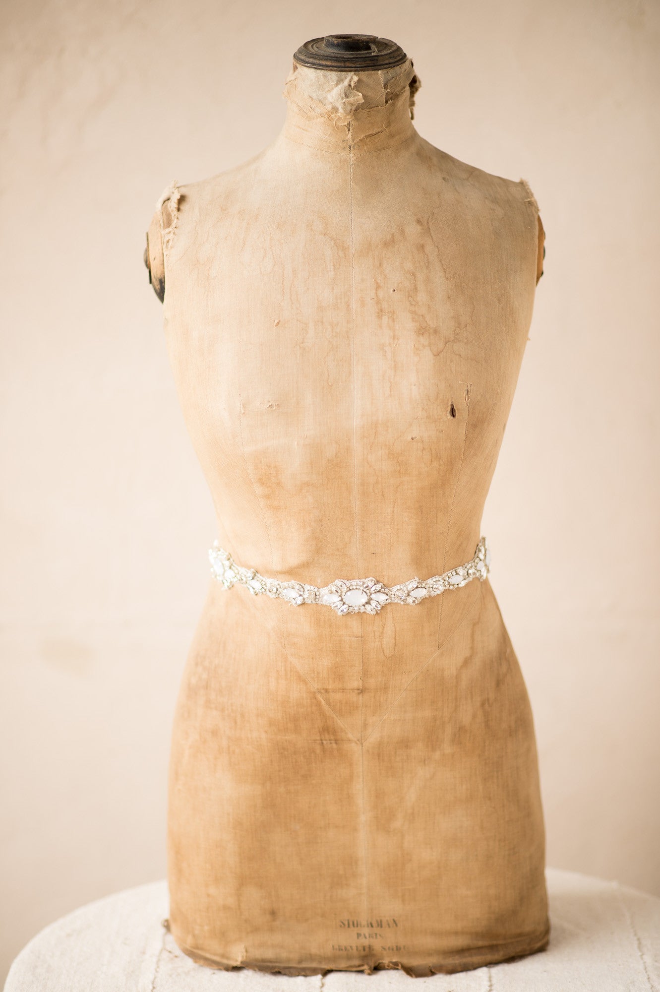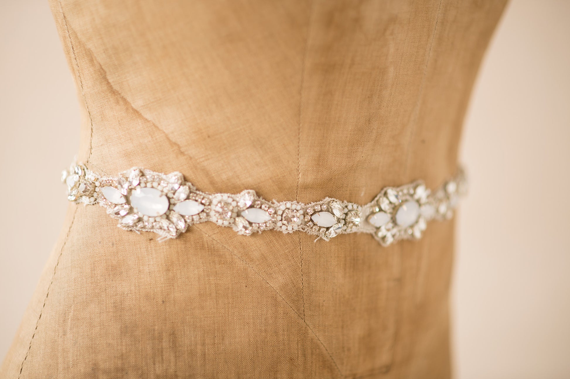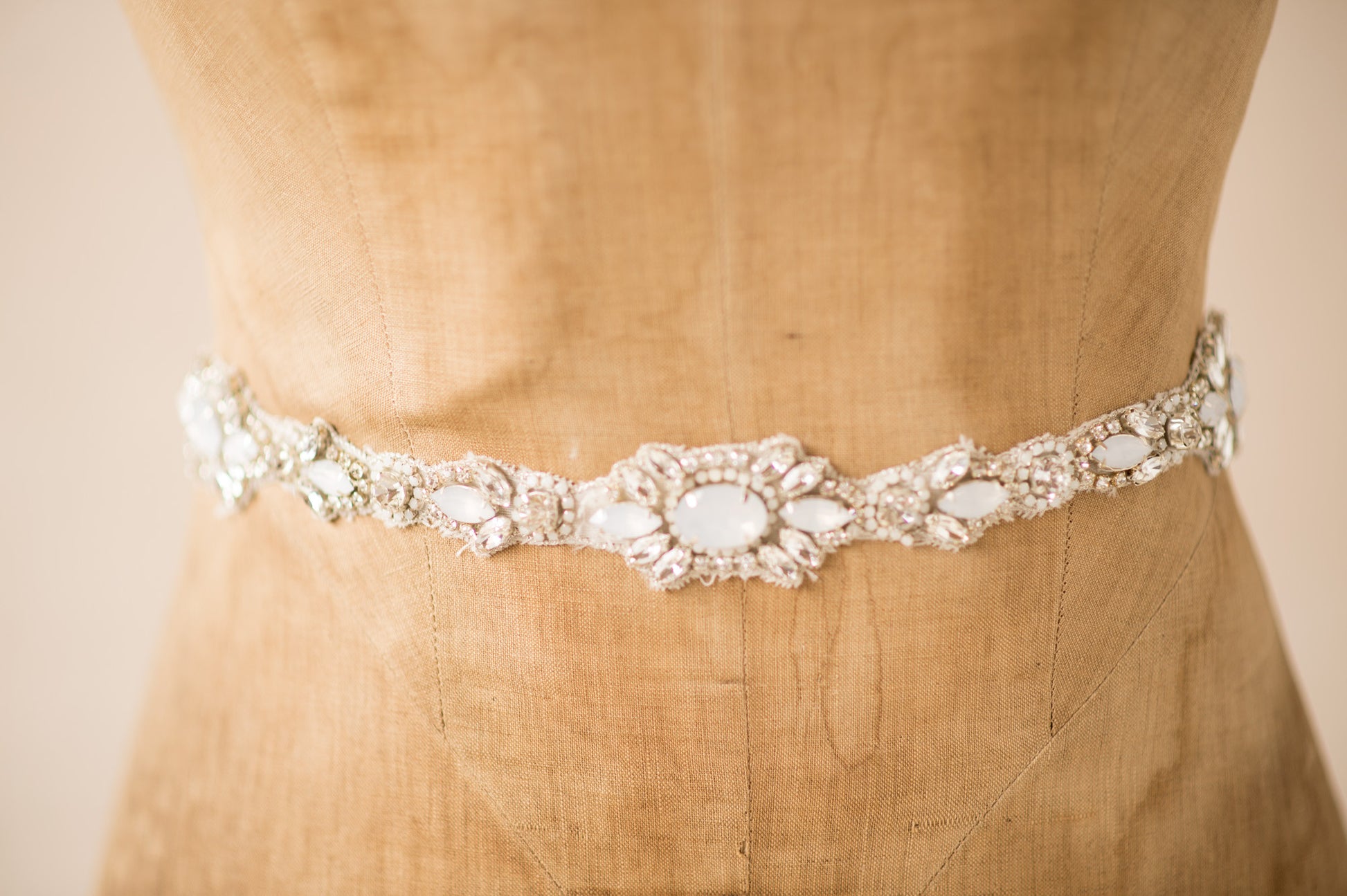 Art Deco Inspired Hand- Beaded Chunky Crystal Thin Applique Long Sash